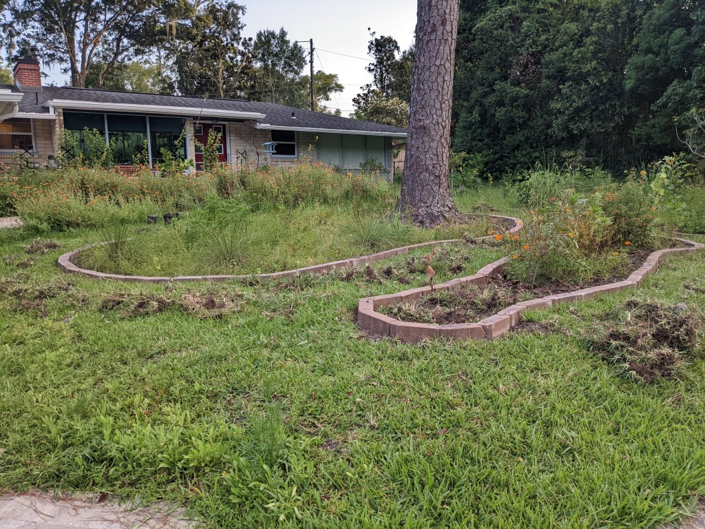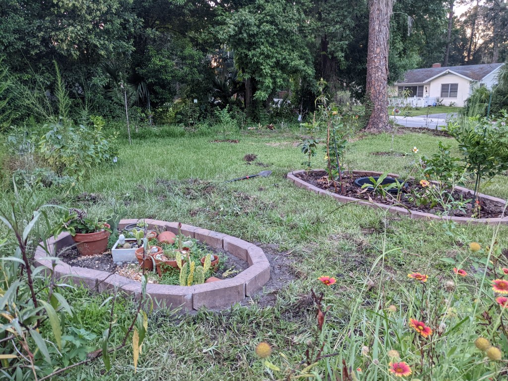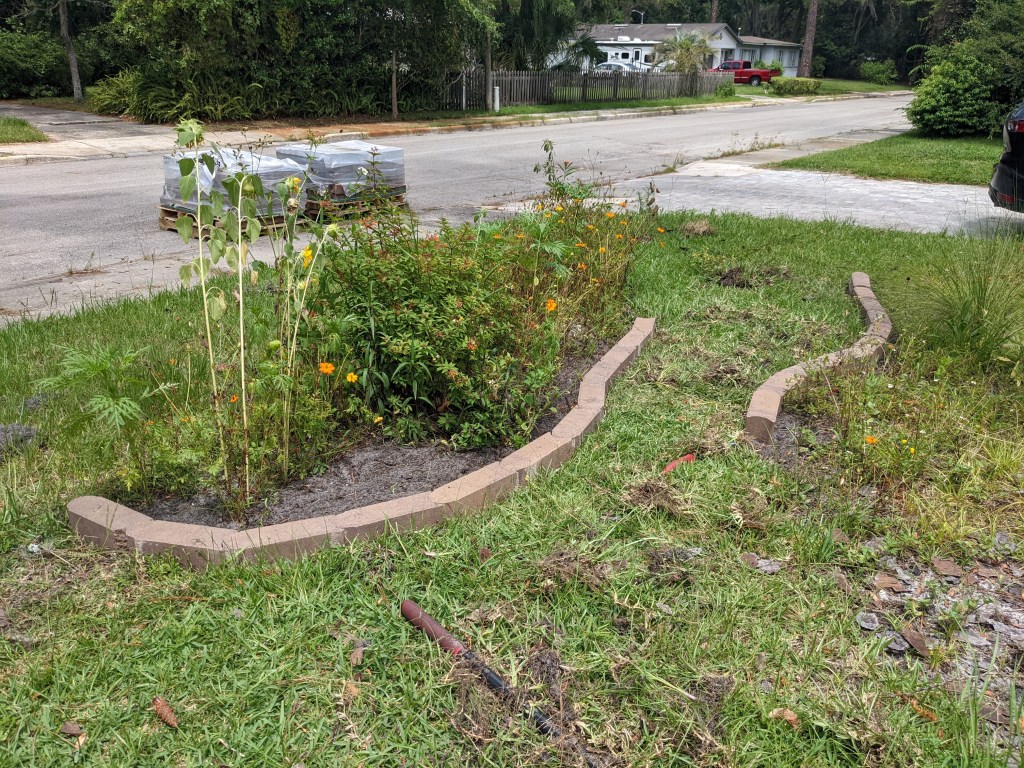 I ordered two pallets of edging stones to start containing and better defining my garden beds. I did this in Missouri and I wanted to recreate it here in Florida. I made good progress in July and am still working on it now that August is here.