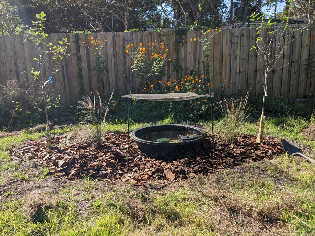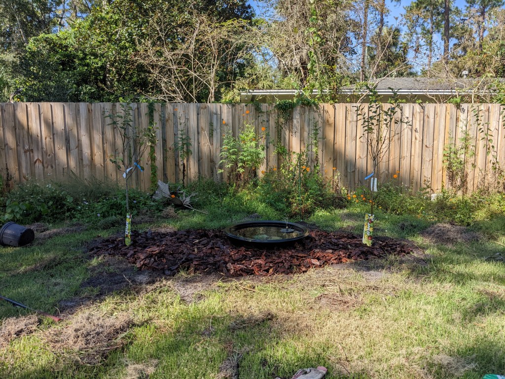 I bought and planted two apple trees. One is an Anna and the other is a Dorset. They were both cultivated to grow in areas with fewer chill hours, however, I still doubt they will do well, apples just don’t do so well in Florida. However, I can’t help it, I love apples and want to give it a try. I also moved and cleaned up my pond and got 6 new feeder fish for it. So far, despite the many raccoon murder attempts, the fish are still alive.